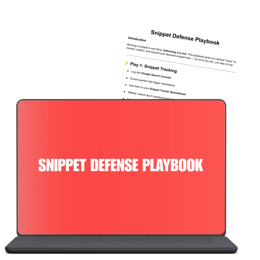 Bonus #3: Snippet Defense Playbook - Your competitor-proof action plan. This bonus shows you how to monitor, defend, and update your featured snippets so you don’t lose Position Zero once you win it. Includes a 90-day content refresh calendar.