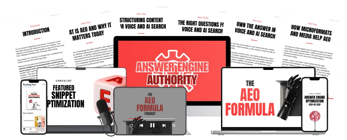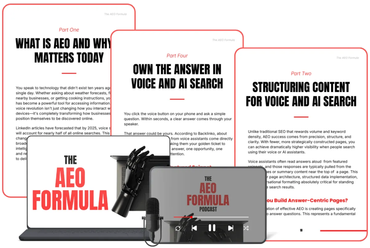 The AEO Formula Ebook - Your complete guide to structuring content so Google, Siri, Alexa, and ChatGPT pick you as the definitive answer.