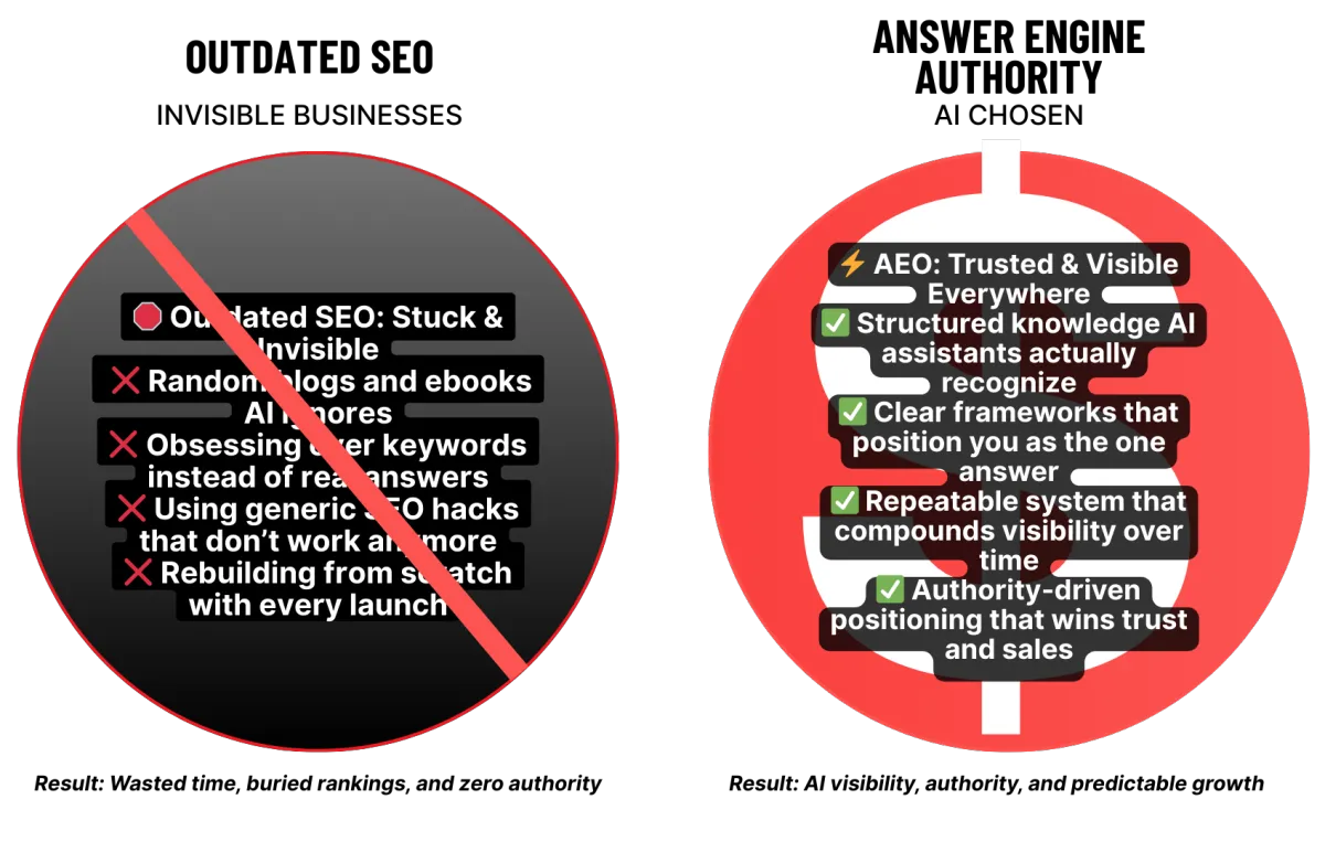 Then I stumbled onto the Answer Engine Authority framework — a system built for the AI era, not the outdated SEO playbook everyone else still clings to.