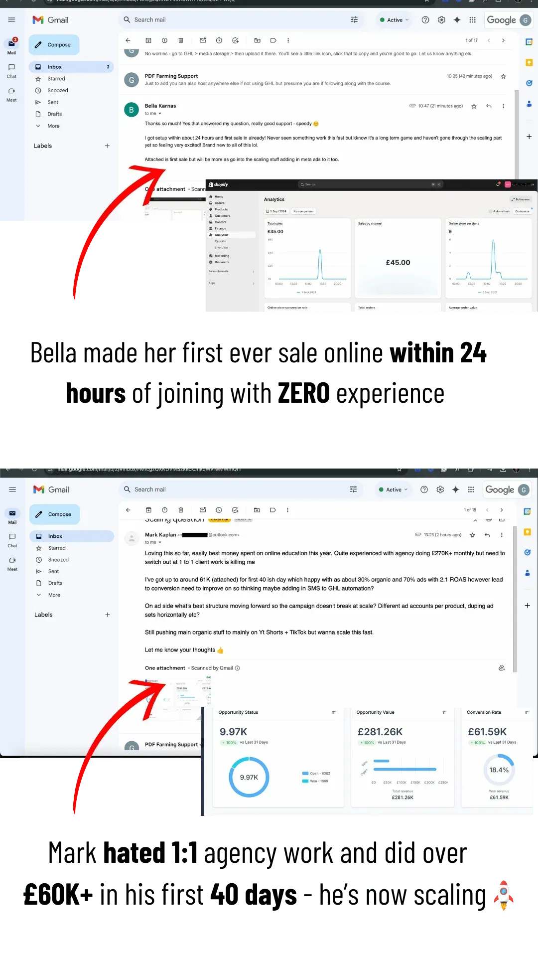 Many students see their first signs of traction within 30 days, some even sooner — once they implement the frameworks. Your results depend on taking action, but the system is designed for speed and repeatability.